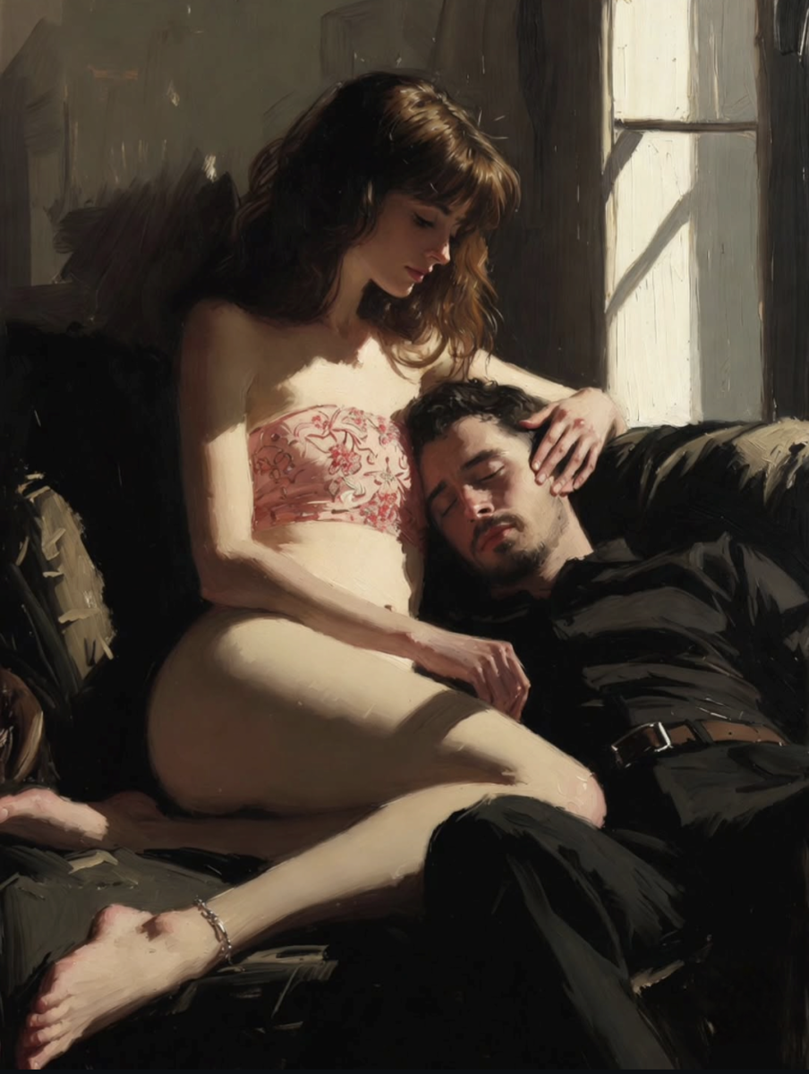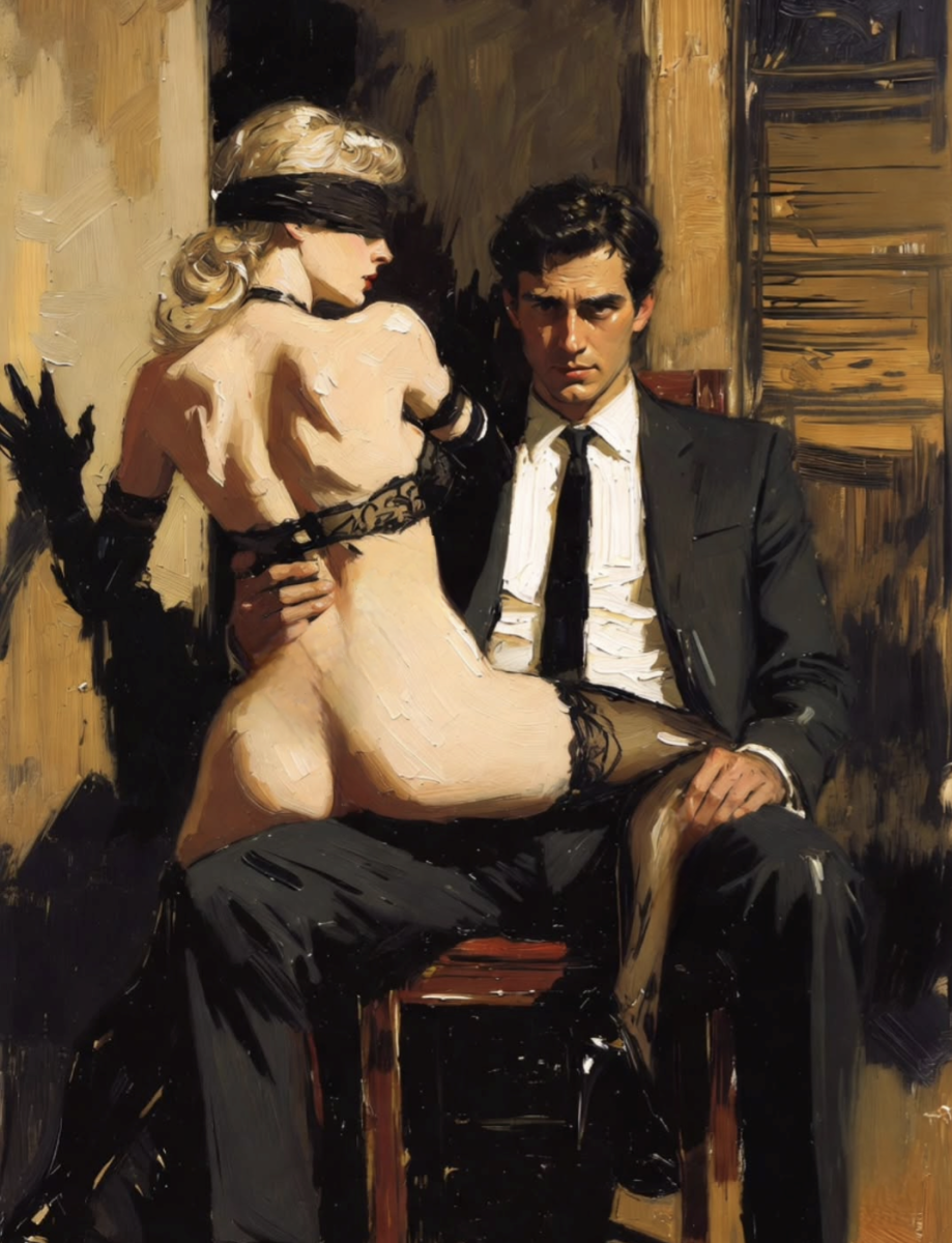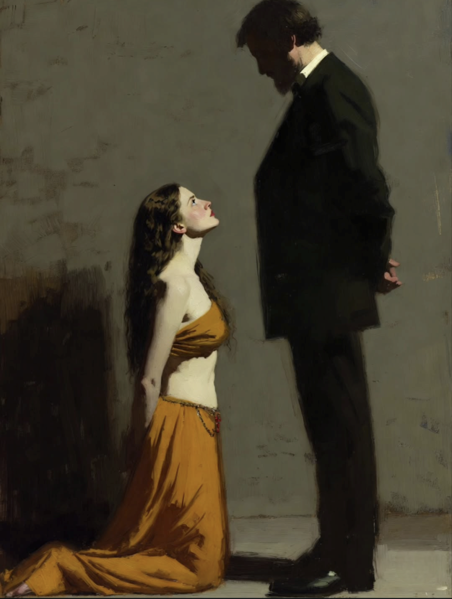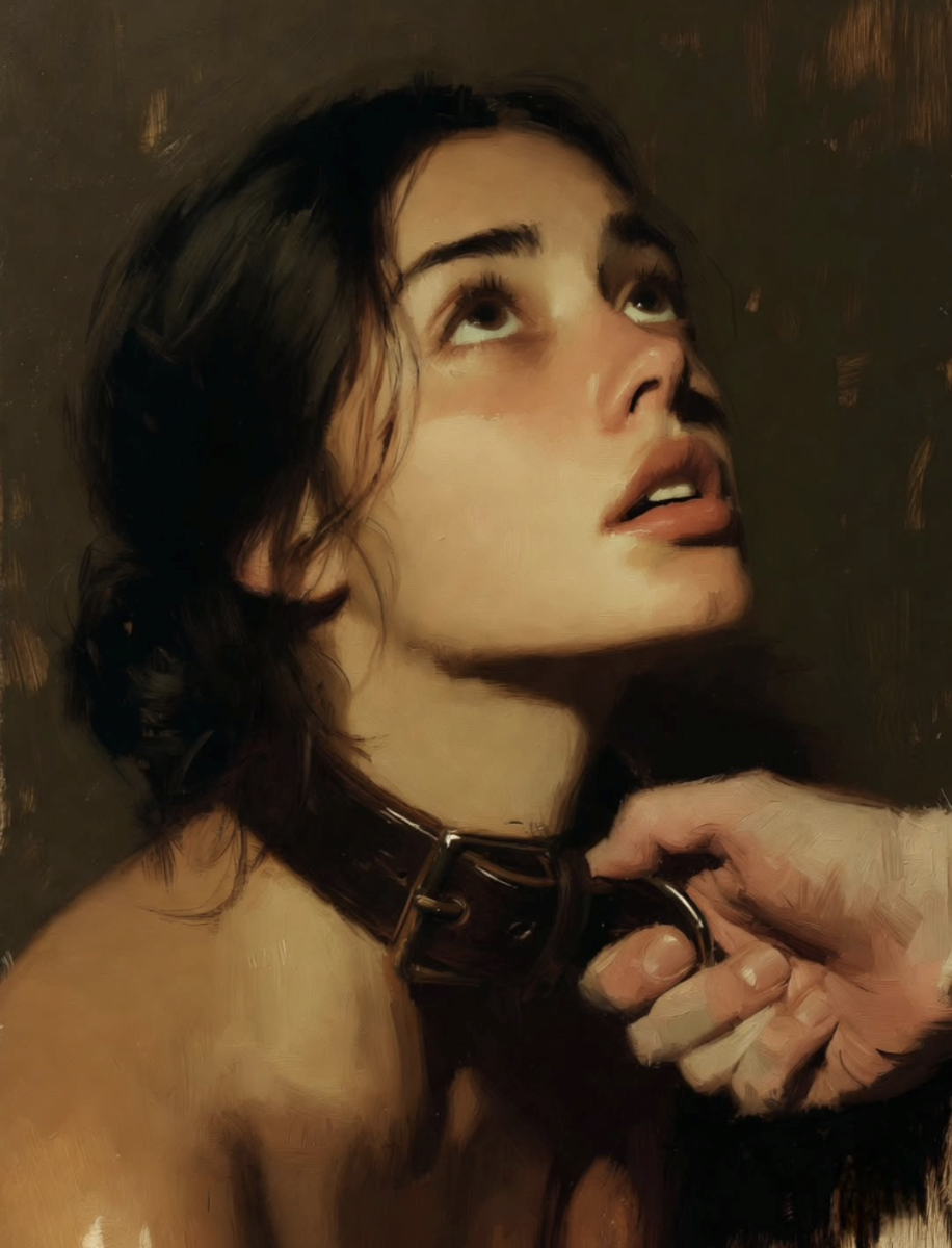 Sie posiert in einer klassischen sub-Haltung vor ihm