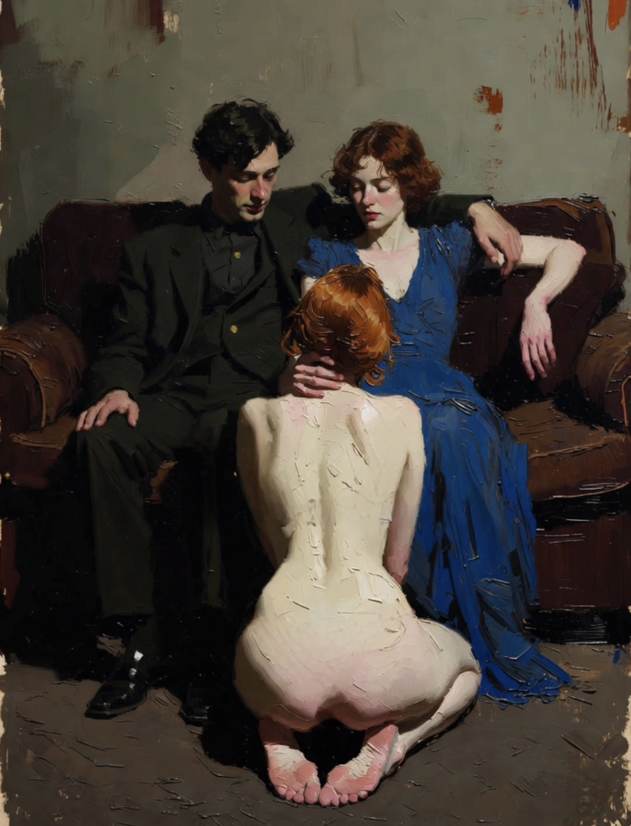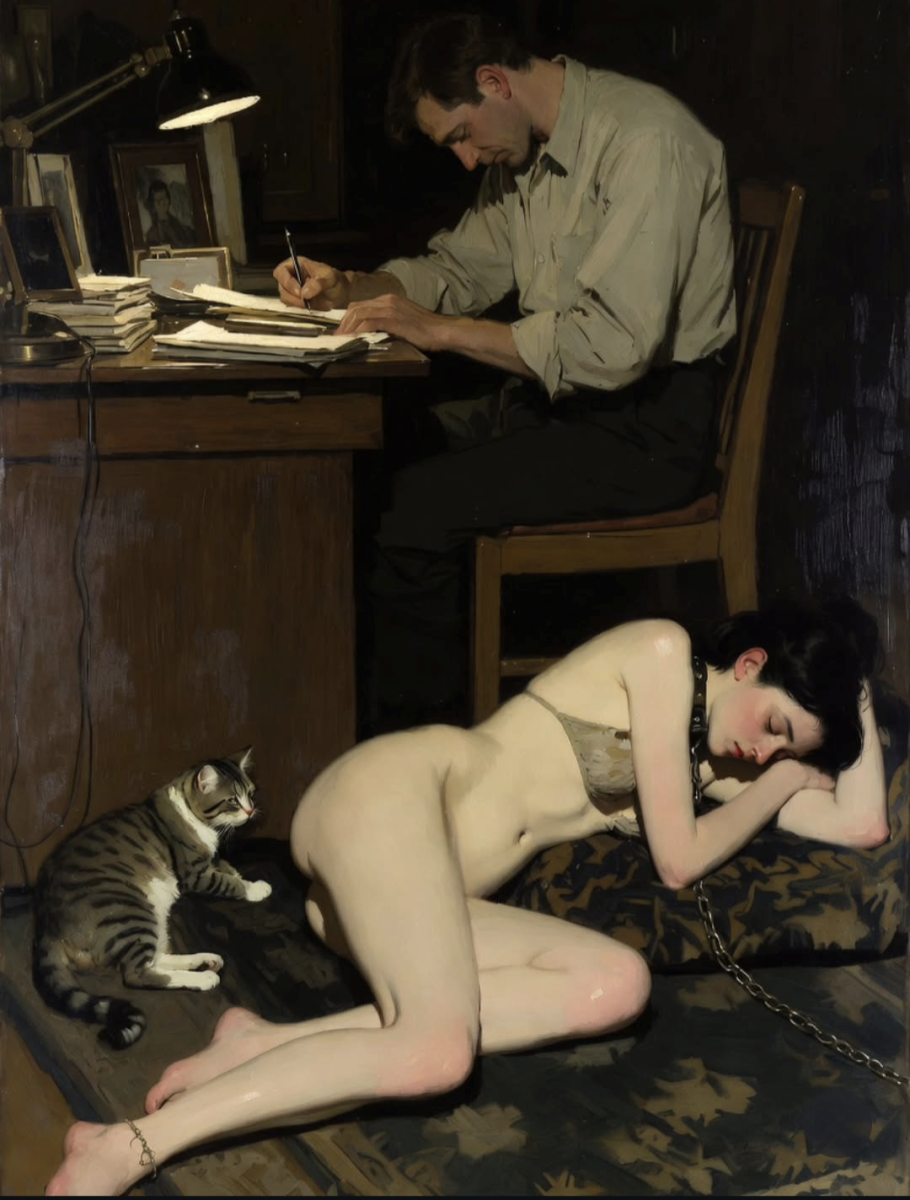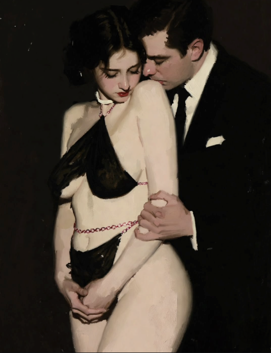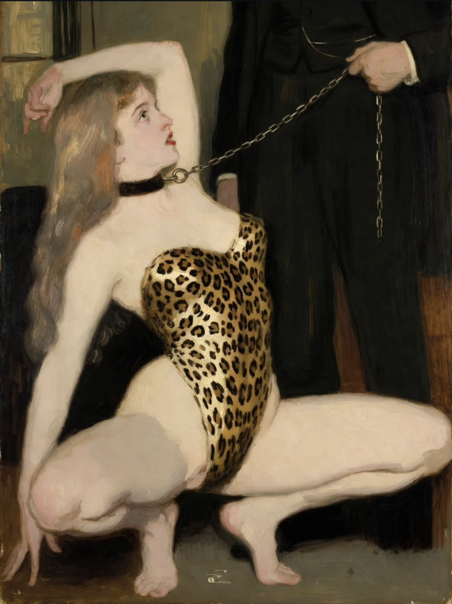 Künstlerische Darstellungen typischer Dom/sub-Posen aus dem Alltag, unter anderem: